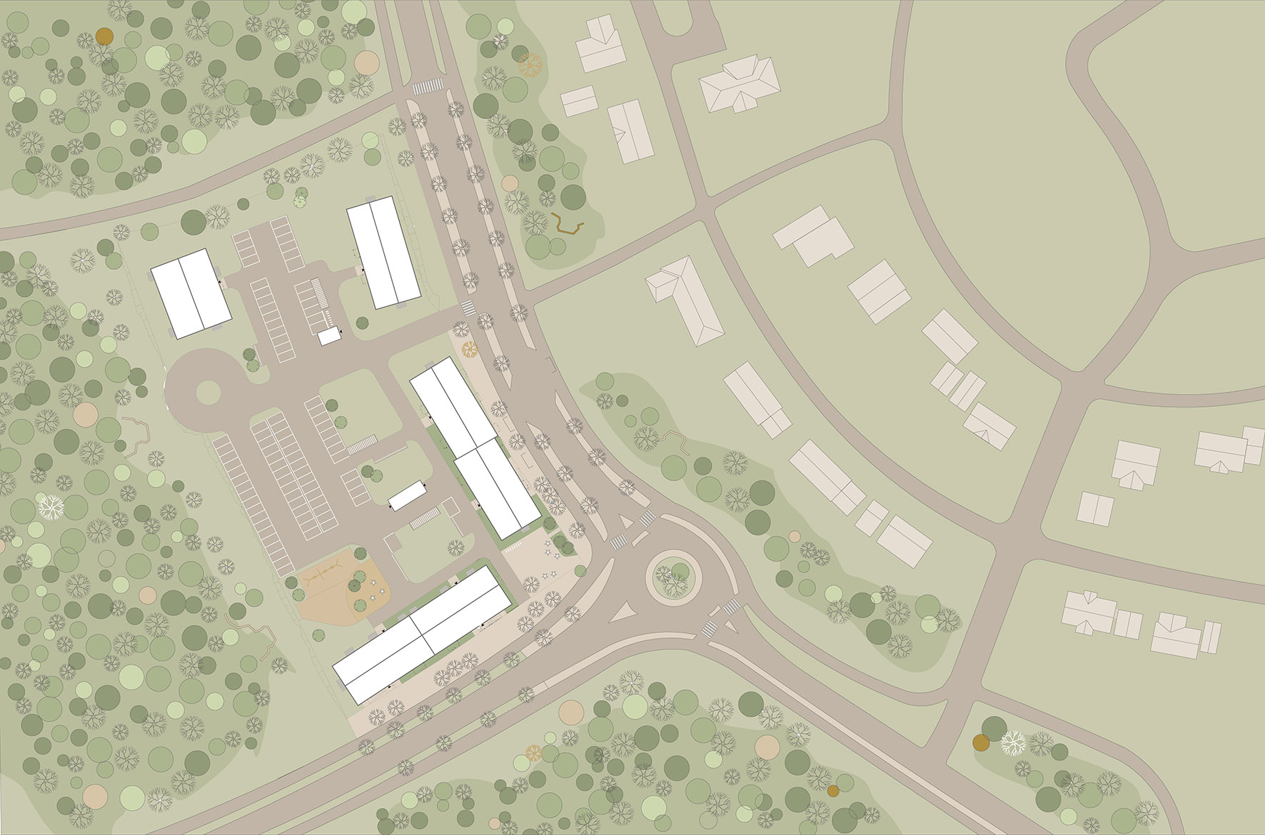 Förutom själva bostäderna ska området utformas med grönområden, cykel- och gångstråk, belysning, parkeringar och olika typer av mötesplatser som till exempel utegym och lekplatser.