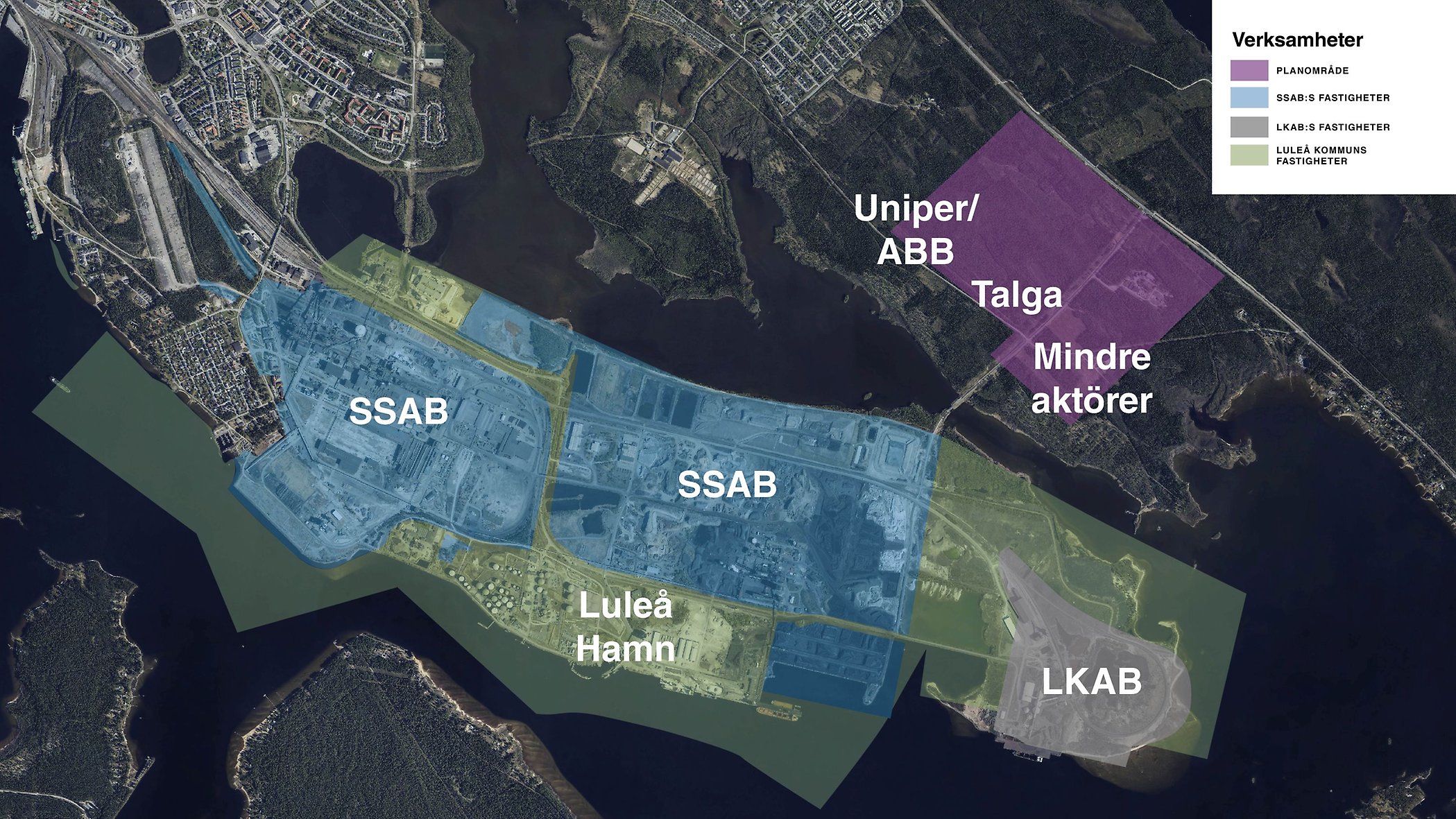 Pressbild. Översikt Luleå industripark, Svartön och Hertsöfältet.
