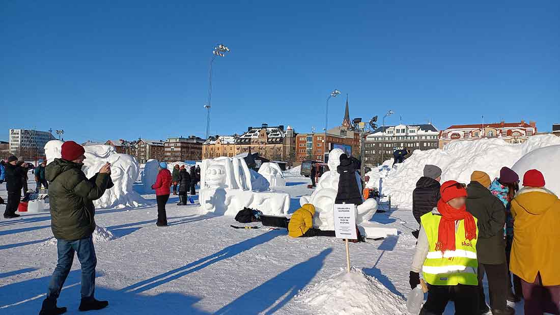 Kom och se när våra duktiga elever får de stora snökuberna att transformeras till imponerande konstverk. Du kan följa skulpterandet som börjar redan onsdag 19:e februari.