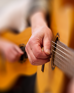 har en gitarr hemma som du kan öva på. Inga förkunskaper krävs
